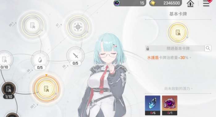 然后就是关于米卡的潜力部分,这个角色基本上就是有三个稍微特别的节点,而他之后的两个特殊节点都要求特定的属性才能够解锁,而他的潜力点进行解锁之后还能够对自己的技能卡牌提高技能属性,并增加回复治疗量这一类,玩家们的自我意识恢复率越高,所获得的助益越强,而玩家们在游戏中最需要做的就是不断地对米卡的各种未解锁部分一一解锁。