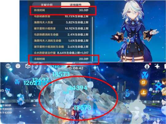 甘雨大招+芙宁娜E技能可以全程给敌人冻结,增加安全输出的空间。