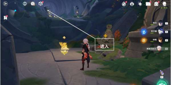 5、往西方向走,进入游隙灵道,击败丘丘人即可启动机关。