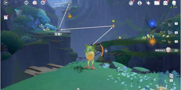 3、往南方向走,沿着下图所示路线走,即可获得一个普通宝箱。