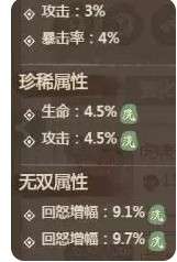 ③解析:无垢需快速释放必杀技,回怒增幅至关重要,伤害加成和攻击百分比提升输出,伤害减免和暴击抵抗率增强生存能力。