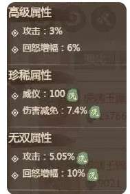 ③解析:辅助僚属需确保生存和技能释放频率,回怒增幅和生命百分比是核心,攻击百分比和威仪根据技能需求选择。