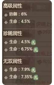 ①优先选择:伤害加成、生命百分比、物理减伤