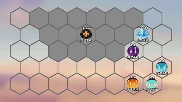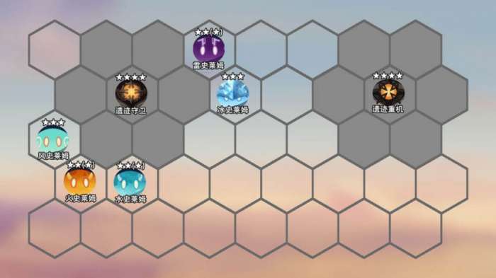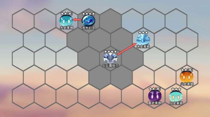 ●关卡4-3:冰史莱姆吸引丘丘王的仇恨,水史莱姆吸引浊水幻灵的仇恨,其余史莱姆攻打丘丘王。