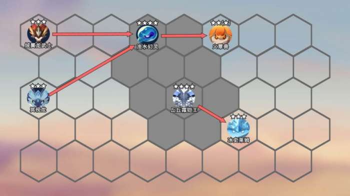 总体思路:优先升级冰史莱姆≥绒翼龙武士,确保前排坚挺,后排输出合格;冥视龙和火蕈兽作为后备。