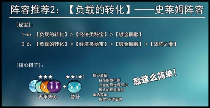阵容推荐2:【负载的转化】或【经济类秘宝】——史莱姆阵容