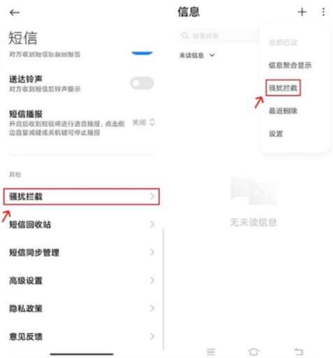 拦截猫app怎么用,打开拦截猫app,一键进入主页,在主页点击右上角的"设置"图标进入,打开"信息"页面,在信息右下角点击三个点,选择"骚扰拦截"。进入后开启骚扰拦截的开关,自定义短信拦截和来电拦截的规则即可。注:不同机型可能会有细微差别。