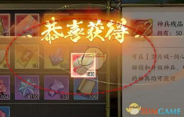 4、即可使用神兵残品自选箱来获取对应的残品道具了;