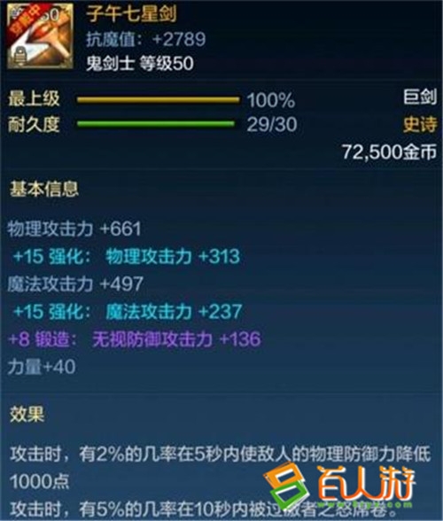 子午七星剑这把武器,在端游中,可是很出名的。一把55级的史诗巨剑,属性很不错,能提高角色的面板。
