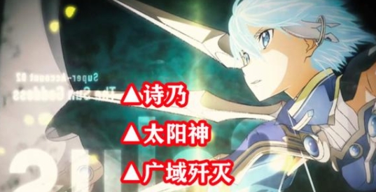 接下来再来说下诗乃太阳神的能力,诗乃所使用的太阳神名叫【索鲁斯】,她在UW里的设定应该属于毁灭女 神,因为她有一个能力叫“广域歼灭”,就是能大范围攻击歼灭敌人。在最新一集诗乃登场的时候就展示过,一箭瞄杀了一大批美国玩家。