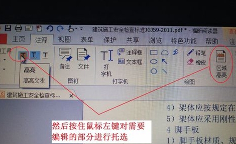 5、给文本添加高亮有两种方法,一种是选择文本标注的高亮文本,第二种是直接选择注释工具栏的区域高亮;