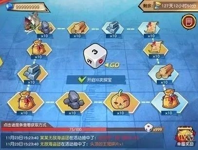 乔巴送福袋,船长开好运。领完之后,也别忘了参与《航海王启航》准备的其他新春庆典活动!航海大富翁全新开启,船长们只需要完成任务、收集能量,就能转换出骰子,掷点数、走格子,金币、材料、各类珍稀道具任你捡!