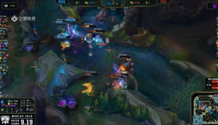 32分钟,FNC在中路主动开团,但被RNG化 解,机器人被RNG众人击杀。34分钟,双方再次在中路发生团战,RNG打出一波1换2,推掉了FNC的中路高地。35分钟,FNC放手一搏,主动打大龙,RNG众人赶来接团,狼行纳尔闪现再次拍到三人,RNG打出了一波3换5,随后RNG一波结束比赛。