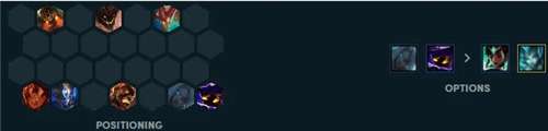 山脉体系阵容站位前场放置守护神,主要是石头人要放置在中间,对抗、控制的能力会更强一些,后场的法师线可以稍微分散一些,这样劫进场的目标不会明确,阵容对抗性极强。