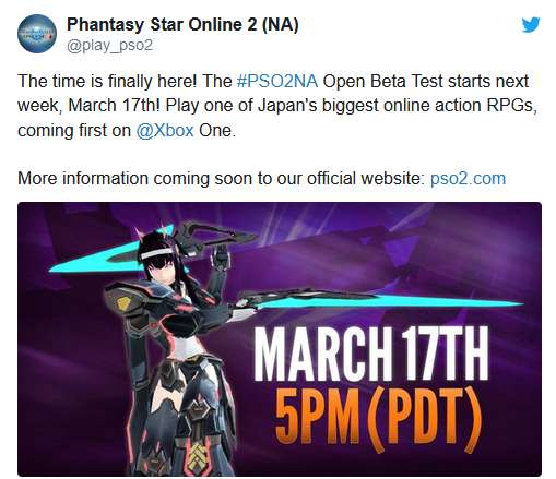 官方表示:“《梦幻之星Online2》将于2020年3月18日上午八点开启公测(北京时间),玩家们届时将在Xbox one平台上体验这款宏大的线上动作RPG游戏。更多细节将在官网公开。”