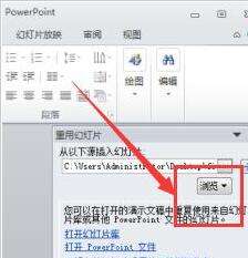 4、点击“重用幻灯片”后,在页面的有便会出现“浏览”,可以选择“浏览幻灯片”或者“浏览文件”,我这个选的是第二种。
