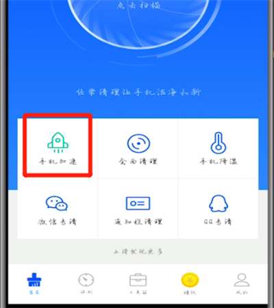 2.找到手机加速,点击进入,然后点击一键加速即可