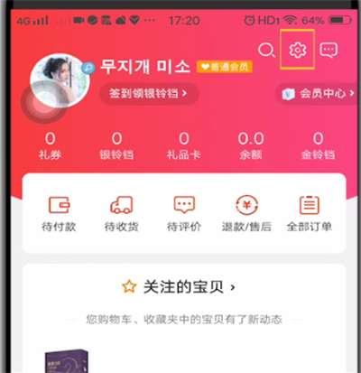 2.点击右上角的设置,点击收货地??