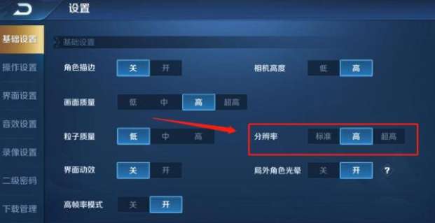 第三个是分辨率,这个分辨率就是手机显示的质量,可以设置为标准,但是有一点影响,如果要求不是很高的话,可以直接关闭,我调整了这三个选项后,打游戏确实是不会一直卡顿了,但是打过两三把后就又会卡一下,所以这几个设置方案希望能帮助到大家。