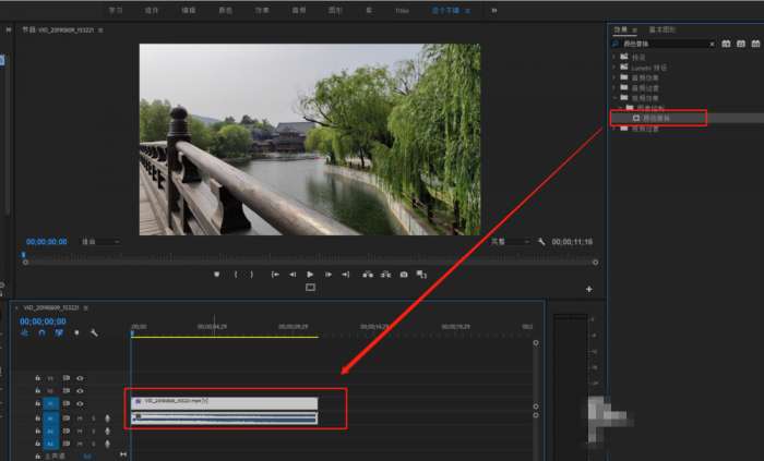 将【颜色替换】效果添加至视频素材,如图,
