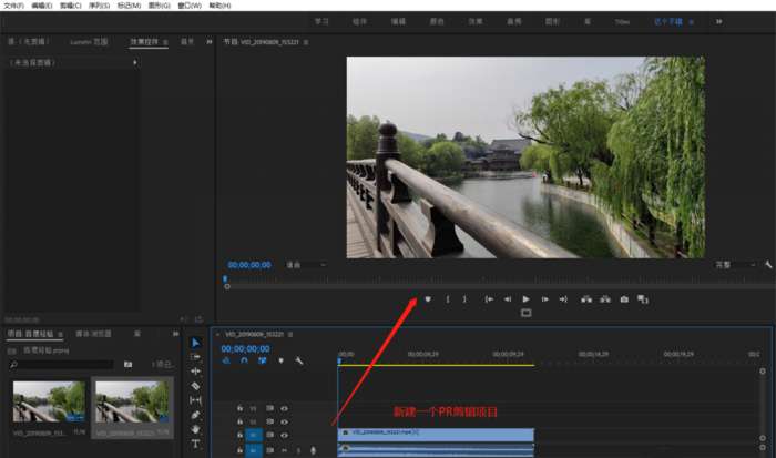打开Premiere软件,导入素材,创建一个序列,