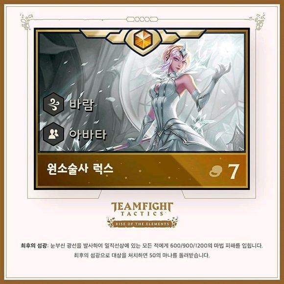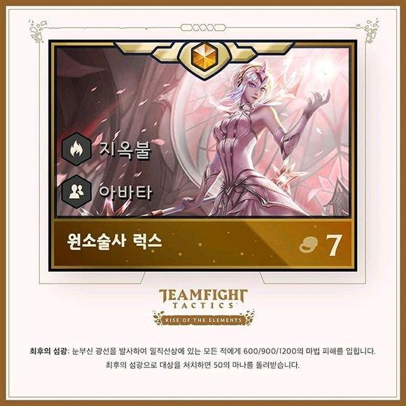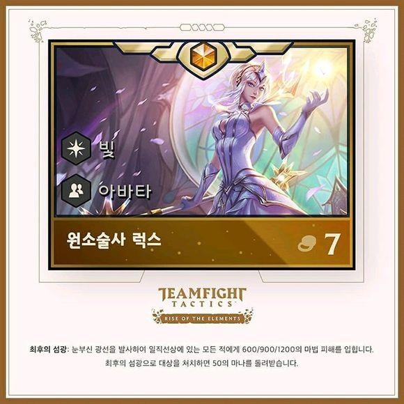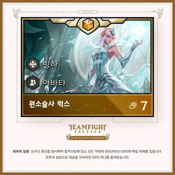 作为传说英雄价值7金币,每局游戏的英雄池里共有10个,对应10种元素各1个。一旦你买到了一种拉克丝,后续买到的会变成已经拥有的种类。
