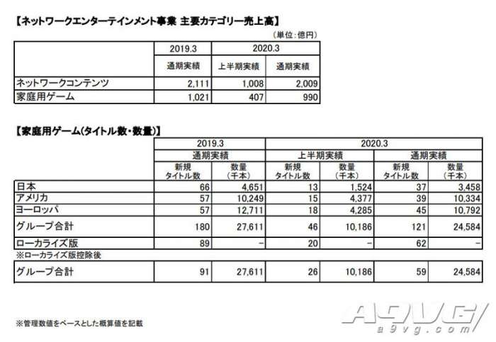 ·以游戏为主的网络娱乐业务全球范围《龙珠》《海贼王》,日本国内《偶像大师》等主力系列都稳定发展。主机游戏《七龙珠Z 卡卡洛特》、《噬血代码》等作品获得人气,既有的老游戏也持续热销。该业务营业额3280.79亿日元同比减少3.8%、营业利益438.79亿日元同比减少7.7%,年累计发售游戏59款,销量2458万份。