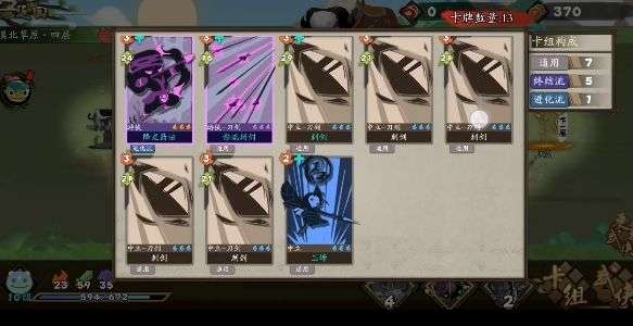 开场用倚天剑挨个试四张无形,选择升级有好效果的升级,在后面删掉其余三张,只留一张。