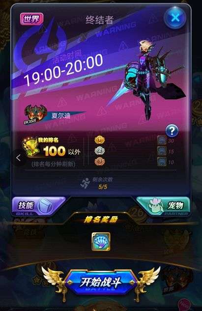 在通关普通关卡的第十八关后,世界模式就可以开启了。深渊的死神活动时间只有一个小时,即19:00-20:00。在世界里排名奖励,第一名可以获得30个深海的思念,第二名15个,第三名10个,100名以外也能获得1个。每天的20:00开始统计排名,统计完成后系统将自动发放到玩家的礼物箱中,小伙伴们记得领取哦!