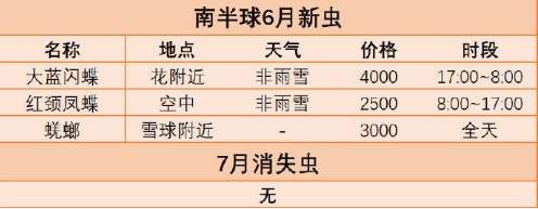 南半球的6月将会迎来初雪,枫叶限定活动也结束了,6月中旬岛上就会覆盖积雪,开始冬季限定~
