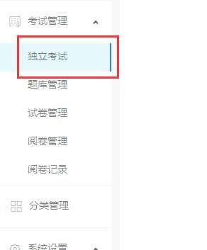 3、点击【考试管理】下的独立考试发布试卷。