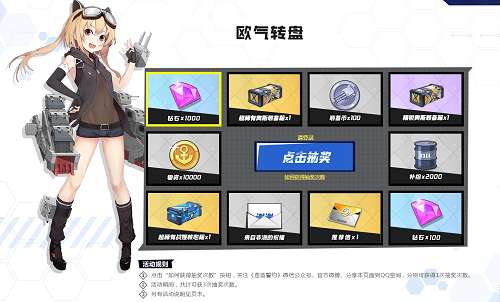 所有在官网预约《苍蓝誓约》的玩家都能够参与转盘抽奖,关注《苍蓝誓约》官方微信公众号、微博,分享页面至QQ空间都能够获得抽奖机会。通过转盘抽奖,玩家将能够有机会获得超稀有战姬、超稀有奥斯装备、钻石、物资等丰厚的资源补给。你是非酋还是欧皇?测试血统的时刻到了!