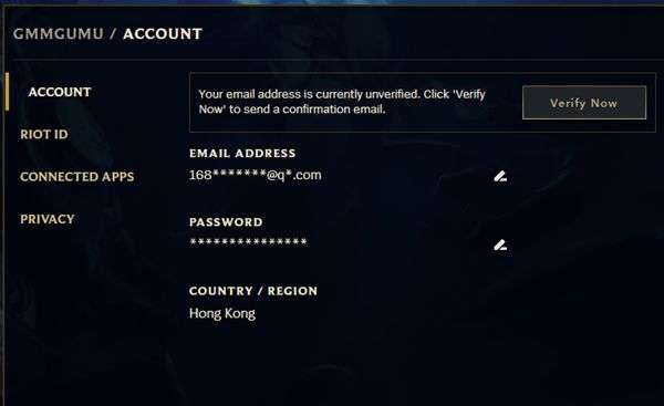 注册完成之后玩家还可以前往Riot账号的管理网页,可以看到如上图所示的账号信息。