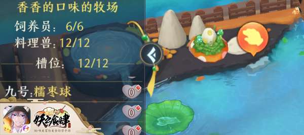 料理兽养殖场,是玩家重要的食材来源地,在冒险玩法中收集到的各种珍稀料理兽,将会在这里繁衍后代,源源不断的为食客提供最珍馐的食材。它共有12个槽位,每个饲养员可以照顾两个槽位。