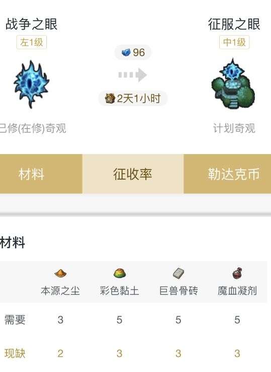 除了奇观资源缺口的展示,还有征收耗时提醒,助你迅速完成外域奇观收集成就。