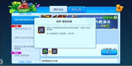 玩家通过游戏可以获得青团,使用一定数量的青团可以兑换A级宠物【雪夜麋鹿】。活动时间为4月5日——4月11日,一定要在活动时间范围内进行兑换哦,雪夜麋鹿志在必得~