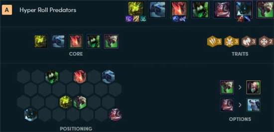 挖掘机现在比较适配的阵容还是掠食者剧毒的阵容,挖掘机能比较好的配合掠食者的羁绊进场打出斩杀、收割的效果,同时这个阵容里的剧毒的羁绊能非常好的限制对手的输出能力对于掠食者线的进攻能力有着更好的辅助,所以掠食者线现在在阵容里是能抗能打很强。