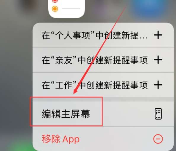 1、长按手机中的应用,选中菜单中的“编辑主屏幕”。
