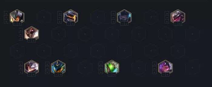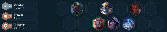 第三个思路虽然没有凑出新的羁绊,但进阶算是最强的。放弃皇子补加厄加特,继续保持4圣盾使羁绊,随后补加锤石利用锤石的技能拉候场区的外援,当然了候场区挂满厄加特啥骚套路也是可行的。但值得注意如果这么进阶,那么皇子的装备都要给予洛,保证洛在前排能承受住伤害。