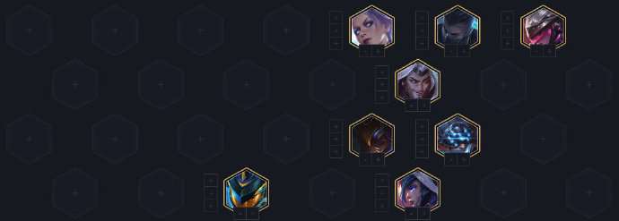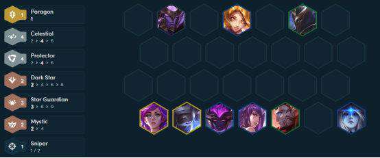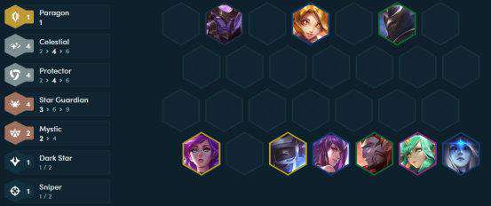 第二个思路就是不加卡尔玛,组成2暗星2秘术师羁绊,个人感觉这个进阶受益几乎没有。仅是个人感觉,但应付特殊阵容时或许会发生奇效。当然根据战况进行选择了。