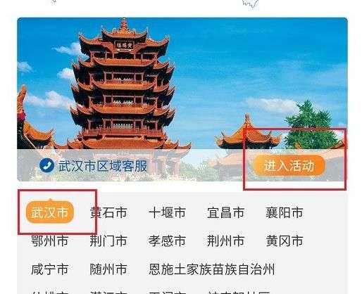第三步进去之后,首先选择武汉市,然后点击进去活动。
