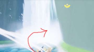 就是玩家来到刚进入圣岛地方,可以看到这个空中岛屿,然后在这个水帘的旁边,就可以找到这个壁画了。