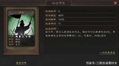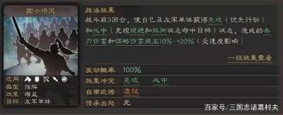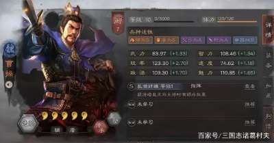 由于有这个特点,使得他带削弱属性的突击战法极强。像弯弓饮羽之类的战法,在他手里能把敌人的统率削哭。这个时候让甘宁这种会心将上去来一刀,伤害直接爆表。