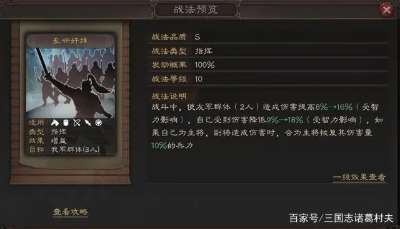 前者很好理解,增加伤害的辅助谁不喜欢?况且这个还是指挥战法全城触发,肯定是假的。而后者就比较屌了,曹操统率和智力本身就很高,对兵刃伤害和谋略伤害有一定抗性,结果再减少18%的伤害,这肉的让人发慌,让他带队伍的核心辅助战法绝对稳,正因如此曹操才成为魏国第一辅助。