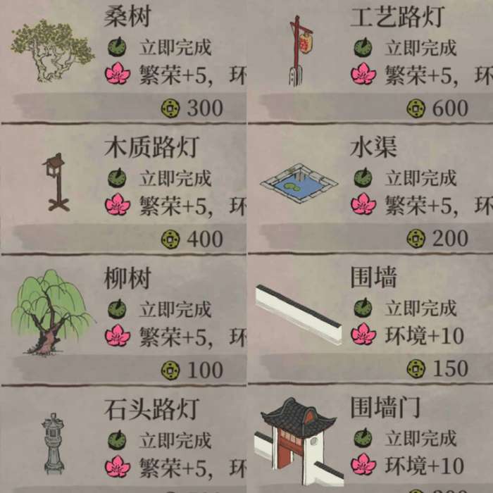 2.桑树和工艺路灯是绝配,水渠适合辅助间隔。