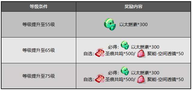 同时,还设置了等级奖励,舰长等级达55、65、75级的时候均会得到一定的以太燃素、圣痕共鸣、聚能·空间透镜的奖励。同时,在活动期间完成任务也能得到以上材料。最后也就是圣痕转化材料的一波下调,由于内容过多,拾柒直接将图奉上。