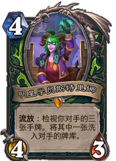 9,明星学员斯特里娜(B),此卡破坏手牌能力不亚于滑翔,但恶魔猎手是不需要这样的卡,也许设计师在替瞎子还债吧。