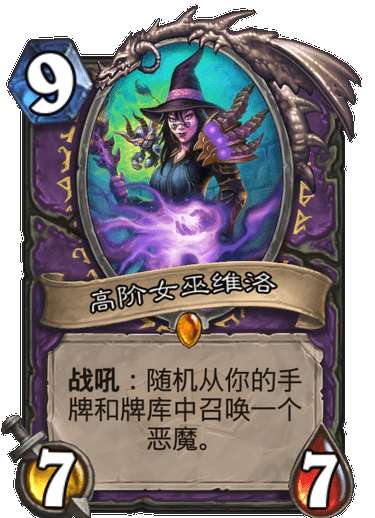 24,高阶女巫维洛(C),同样费用过高,术士不缺召唤恶魔的手段,况且随机性过高,也不太稳定,今后也难进构筑。