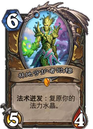 20,林地守护者欧穆(S-),作为蓝龙德组件可以是德鲁伊在标准玩玩杂技,朴实无华,但用途单一,卡组固定。