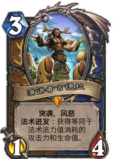 4,演讲者吉德拉(S-),版本初期德鲁伊追求速度,少带他,但现在构筑逐渐优化,其抗快攻的能力就被发掘了,甚至对方解不掉就可以制胜,已经是必带卡了。